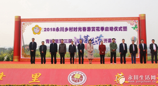 3月3日上午,2018永川区乡村时光•春游赏花季启动仪式暨青峰里第三届油菜花节开幕式在永川区青峰镇油菜花基地盛大举行。