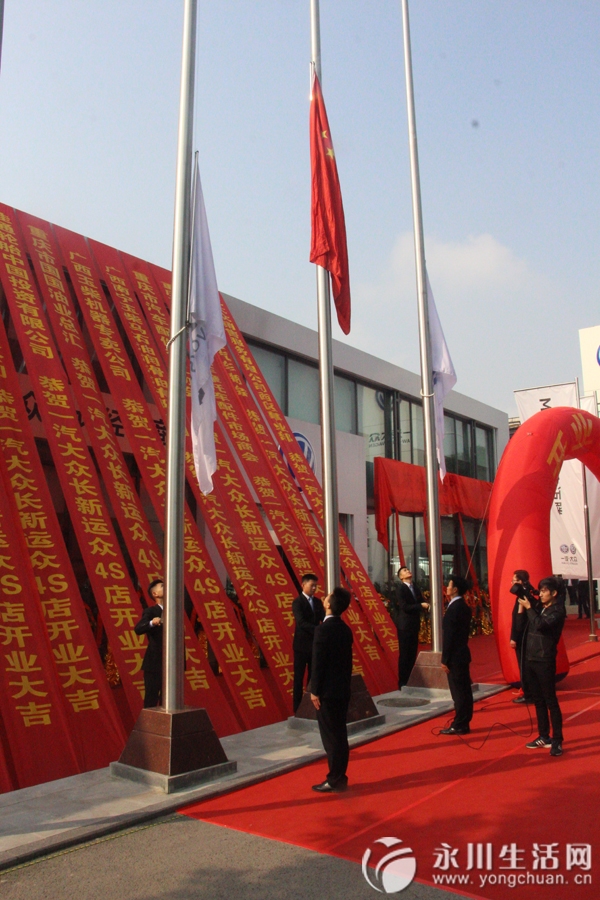 开业启动仪式开启后,进行的是一汽大众升旗仪式和揭幕仪式。