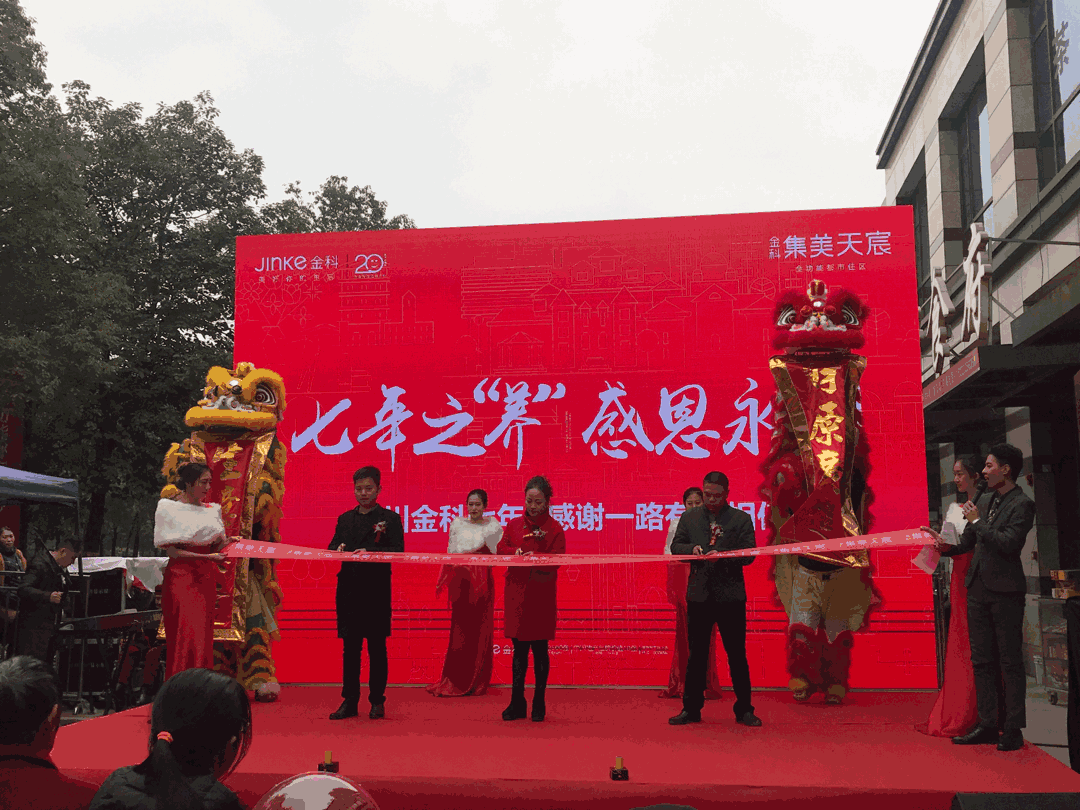 在一片的吉祥萦绕的氛围中,在场领导走上舞台进行剪彩仪式,伴随着漫天礼花缤纷落下,金科集美天宸城市展厅美好启幕。