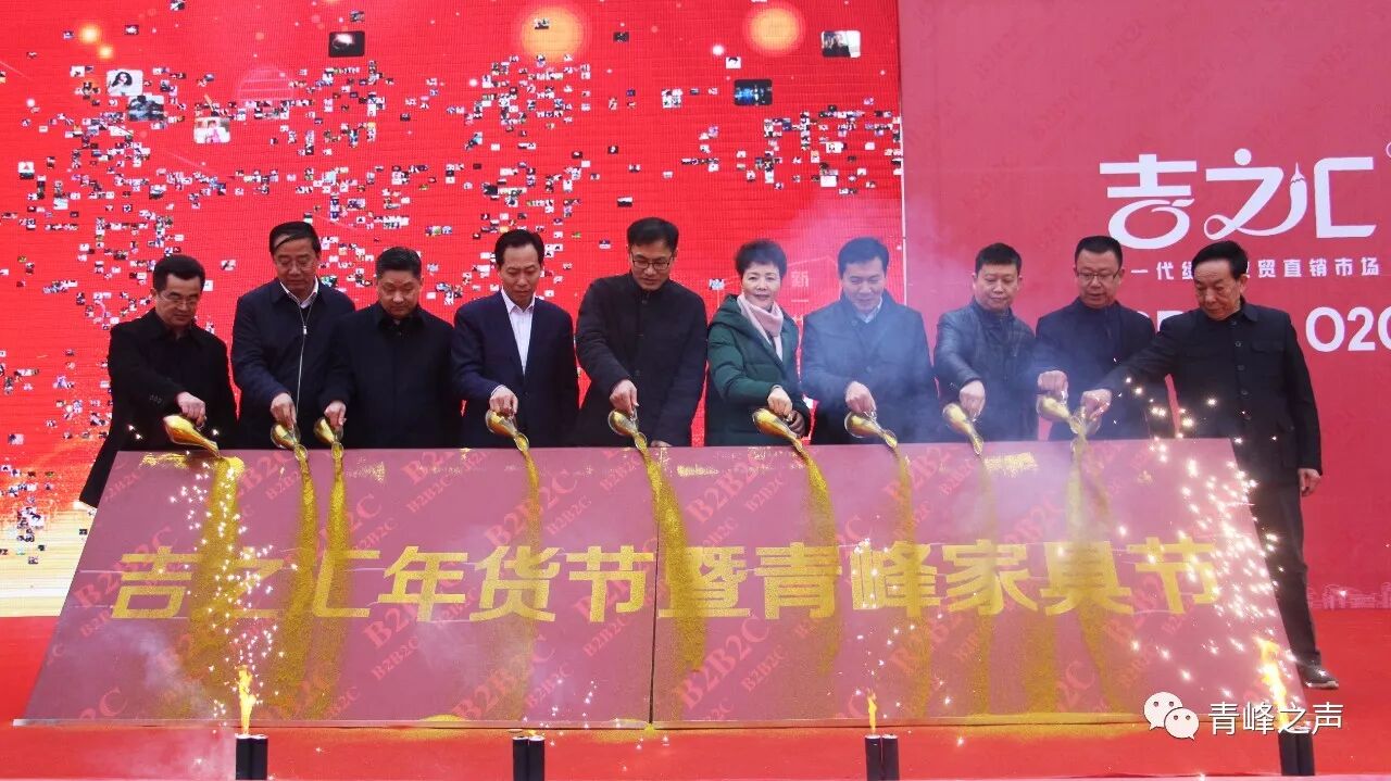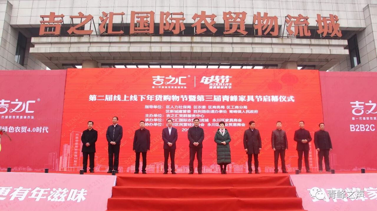 1月20日上午,吉之汇第二届线上线下年货购物节暨第三届青峰家具节在吉之汇国际农贸物流城举行盛大启幕仪式。永川区委常委、区委宣传部部长赵德明,永川区人大常委会副主任孔萍,永川区人民ZF副区长王寒峰,永川区政协副主席、区工商联主席罗朝友, 以及永川区人力社保局局长王建华,永川区商务局局长蒋微,永川区青峰镇党委书记包玉海,永川区青峰镇党委副书记、镇长黄健,吉之汇国际农贸物流城董事长钟家成,吉之汇市场经营商户代表李昌华等领导及嘉宾出席启幕仪式。