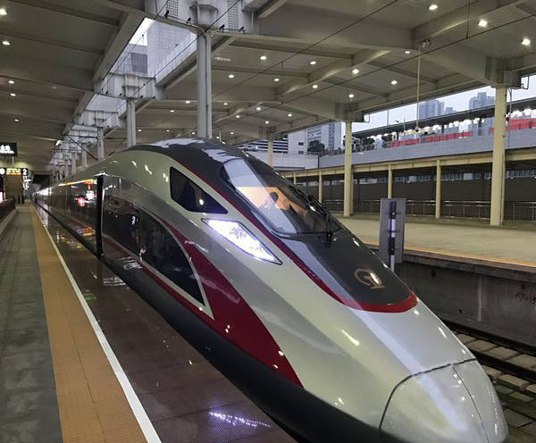 25日,G1314次“复兴号”动车组从重庆出发,经渝利线过恩施、宜昌后,接入武广高铁,最后到达深圳。该车的列车长介绍,这趟车进入武广高铁后开始提速,最高时速可达350公里。