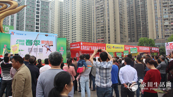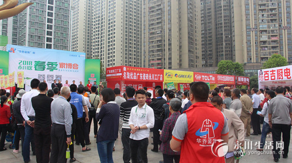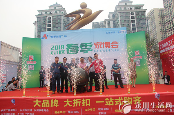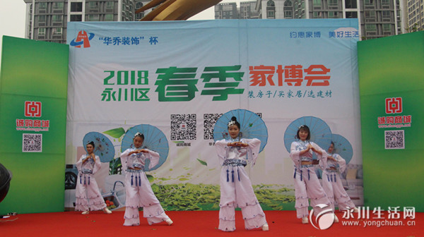 4月20日上午,华乔装饰杯·2018永川区春季家博会在渝西广场盛大开幕! 本次家博会由永川五洲城、永川家电商会、永川建材商会、永川区江苏商会指导,由重庆诚购科技有限公司、重庆欣漾会展服务公司联合承办,由华乔装饰公司独家冠名。 为时三天的家博会,为永川家装市场与棠城百姓搭建交流沟通的平台,促使永川家居建材与室内装饰行业更好的惠泽永川市民。 感受一下来自永川人的热情 家博会开幕现场人山人海,一波又一波的永川人涌入渝西广场,参加这次家装盛宴,主办方还准备了精彩的节目表演。