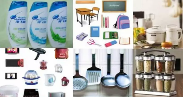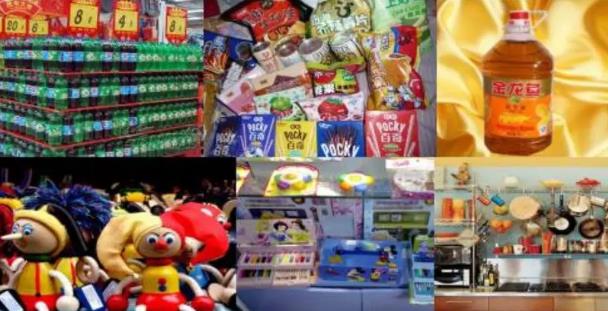 糖果、可乐、牛奶、洗衣粉、牙刷、衣架、毛巾、吹风、台灯、食用油等等。