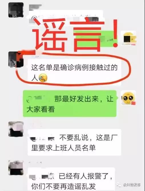 [size=17.068px]导 读 [size=17.068px]新冠肺炎疫情发生以来,有关疫情传播态势、虚假防治措施等流言和谣言在网上传播,引发不少网民误解误读,个别网民编造传播虚假病例数据等谣言,极易引发社会恐慌情绪,严重影响网络安全秩序和社会稳定,同时也给疫情防控工作带来严重干扰。特别提醒:以下这些为谣言,信不得! 谣言1:永川何埂镇一新冠肺炎确诊病例接触名单公布