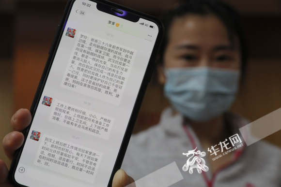 肝胆外科护士罗梦玲展示父亲发给她的微信。华龙网-新重庆客户端记者 张质 摄