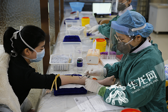 医护人员抽血体检。华龙网-新重庆客户端 记者 李文科 摄