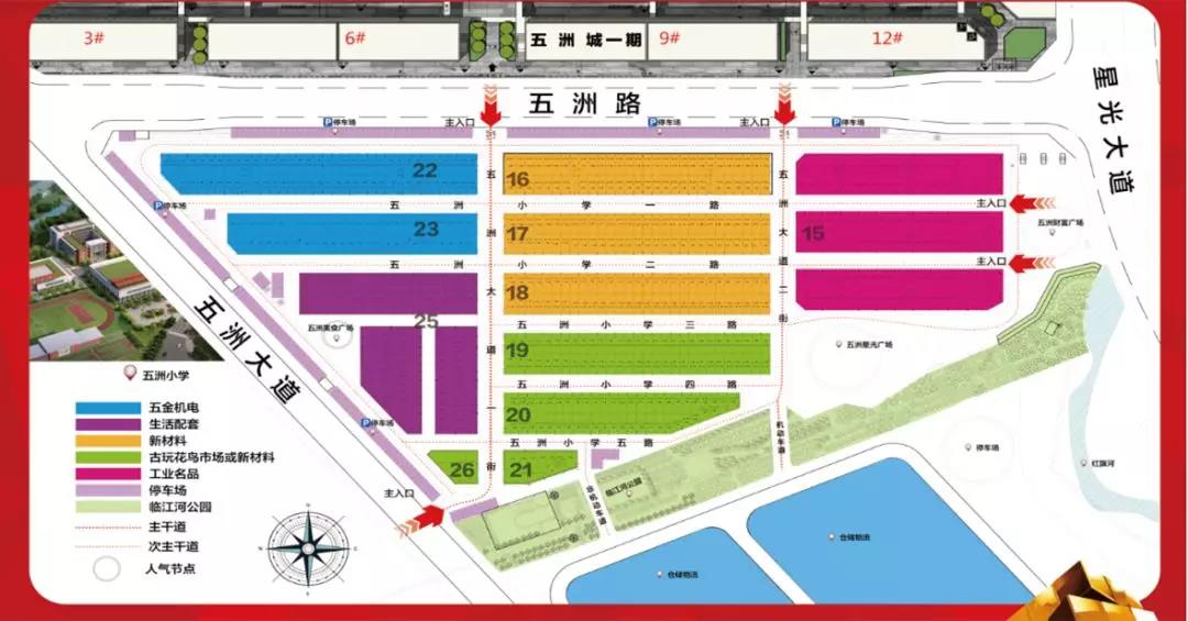 超强的人气会带动商圈的成熟,形成业态**效应,也就是说,商圈的人气越旺,消费者越爱扎堆去消费,通过这种聚合效应商圈和商铺也会越做越旺。此外,商铺分区合理,分为餐饮区、五金区、工业名品区、休闲娱乐区等