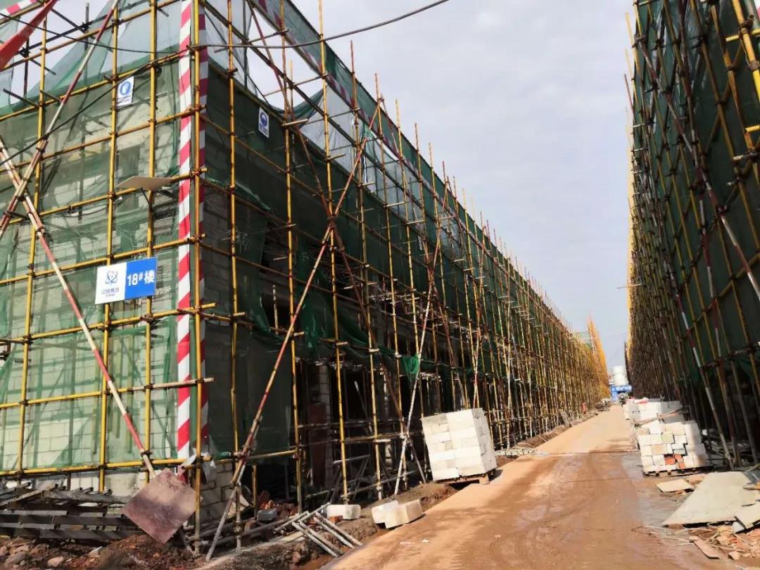 【五洲城】5月份工程进展顺利, 截至目前15#、16#、17#、18#、19#、20#、21#、22#、23#、26#楼主体结构已封顶,正在进行二次结构的施工。